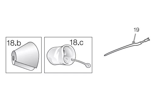 18. 耳塞(a.开放耳塞b.闭合式耳塞c.定制耳模):对于佩戴附带耳塞不合适的用户,验配师会根据需要使用定制耳模或开放式导声管、耳塞。
