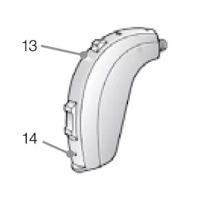 13. LED指示灯*:提示助听器是否正常使用、是否需要更换电池。
