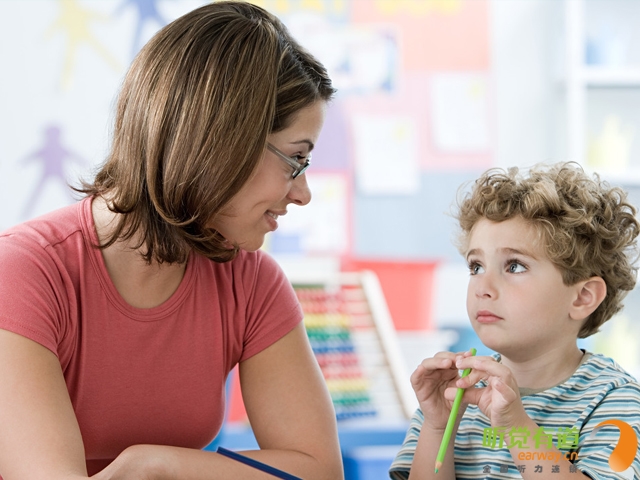 这样儿童能接收到最清晰的目标声音,亦可利用视觉提示帮助分辨和理解语言。