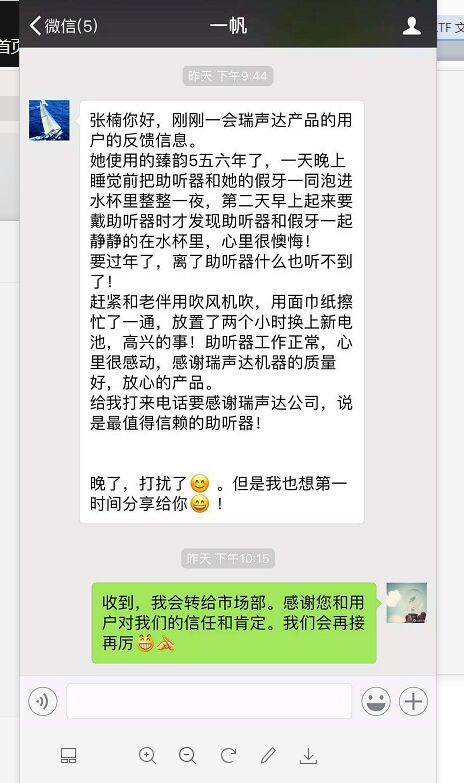 下面这位珠海的瑞声达儿童用户家长,便以亲身经历盛赞瑞声达助听器的高质量水平。