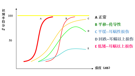 虽然听力无多大影响,但是长期下来,听力损失可能由C变为了D的回跌型,甚至是E的低矮型。也就是,即便声音都听到了,但由于言语识别能力大大下降,听不清~楚!