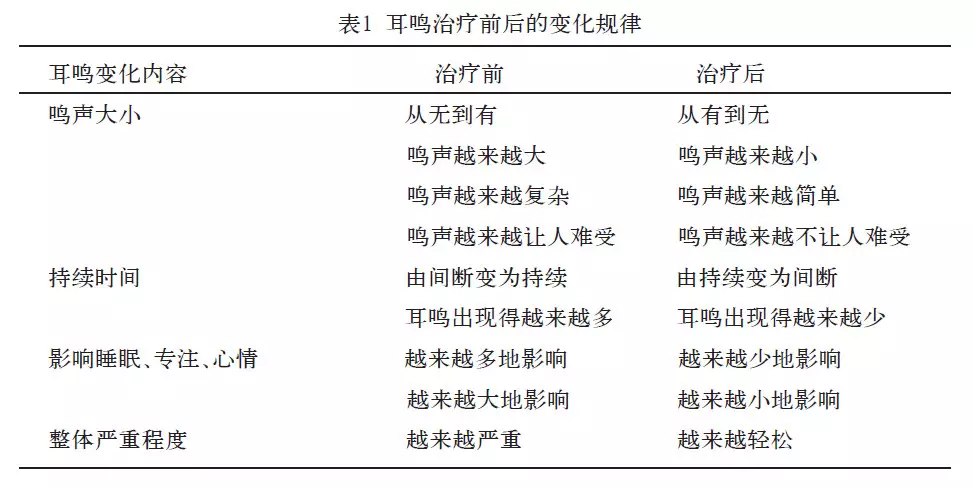 应用中医药治疗耳鸣的临床实践和科研工作中,笔者发现了如下临床现象,见表1。