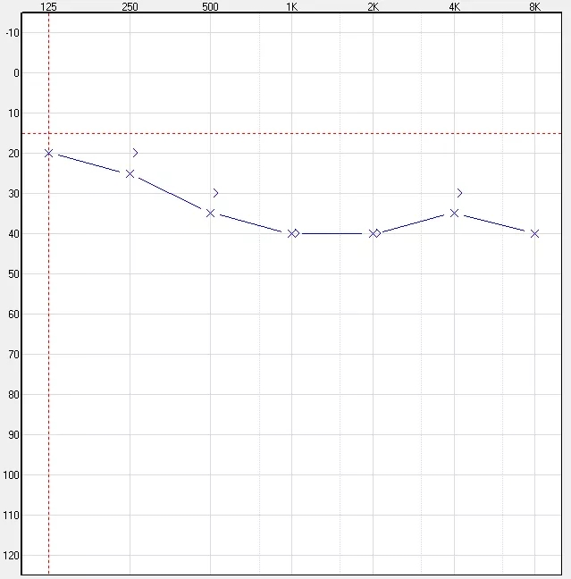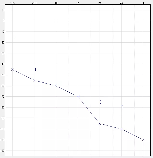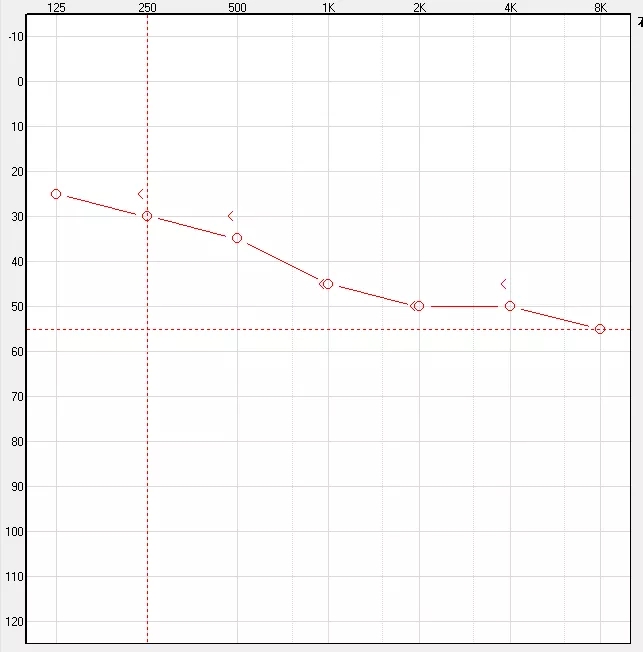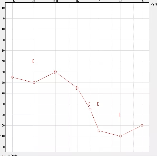 (以下听力图示例,红色代表右耳,蓝色代表左耳)