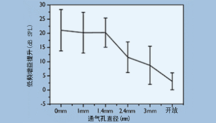 在开放式验配的情况下,虽然堵耳效应消失了,但同时1000Hz以下的低频信号也损失了大约30dB,这对理解言语会产生一定影响。因此,开放式验配必须对低频提供更多的增益。