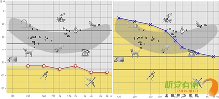 如果同样一种声音但两侧耳听起来不同,很容易导致声信息的判断混淆,一般很少有人愿意双耳佩戴。所以在为非对称听力损失进行双耳选配时,必须力争建立双耳的平衡。至于提供多少增益、多少通道,具体情况需要具体分析。最终的目的是获得双耳融合的、整体的感觉。