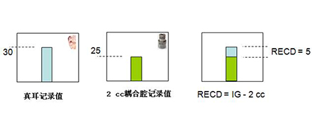 RECD指的是同一输入信号条件下,鼓膜处各个频率的声压级与耦合腔中的声压级之差。