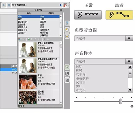 在“典型听力图”中,有“轻度”、“中度”、“重度”、“极重度”、“陡降型听力”等选项,若选择“重度”,则可体验重度听力损失者所听到的声音。
