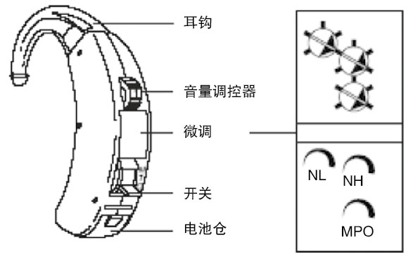 微调控制器:控制器的作用是调节放大器的参数,使得最终输出声音符合每位弱听人士的放大需求。控制器可以是机械的电位器(用螺丝刀调节),也可以是寄存器(通过电脑调节参数)。微调是选配过程中最重要的部分。