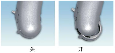 传统的耳背式和盒式助听器一般采用“O-T-M”开关,定制机的开关常常与音量控制或程序切换按钮合为一体。耳背式助听器的“O-T-M”开关非常容易受潮气影响而致使整机故障,因此新型的设计采用程序切换按钮或电池门作开关。