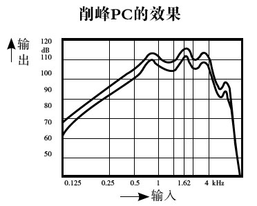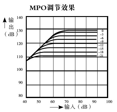 3)MPO—最大输出限制:为了防止声输出过高超过弱听人士的不适阈,大多数助听器都有最大声输出限幅装置,如削峰PC、自动增益控制AGC电路等。削峰电路就是把信号中超过某一限度的峰值部分削去,但削峰后输出有失真,且信噪比小;AGC电路是较先进的限幅控制电路,它把大于不舒适阈的输出声压缩后再输出,因此不会带来失真,但是压缩需要起效时间,对于特别敏感的弱听人士,有时采用削峰更安全。