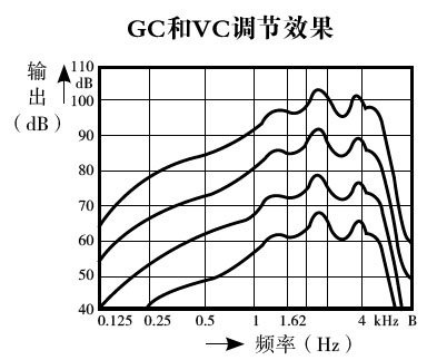 5)增益控制(GC)和音量调控(VC)用于调节全频段的主声增益,佩戴者感觉到的是整体响度的大小变化,通常VC的调节范围小于GC。