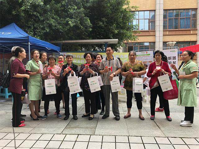 2018年的金秋,正逢中秋、国庆、重阳三节的到来,听觉有道全国连锁四川分区的验配师们在四川分区各地区门店进行《助听公益行》活动。各服务中心分别走进社区、走入老人院、亲临老年活动中心,走上街头为市民们宣讲听力健康预防与保护,也为市民们提供免费的听力健康咨询及耳部基础检查、视频耳部检查、免费额听力检查及血压测试等。