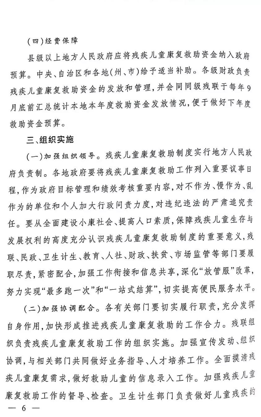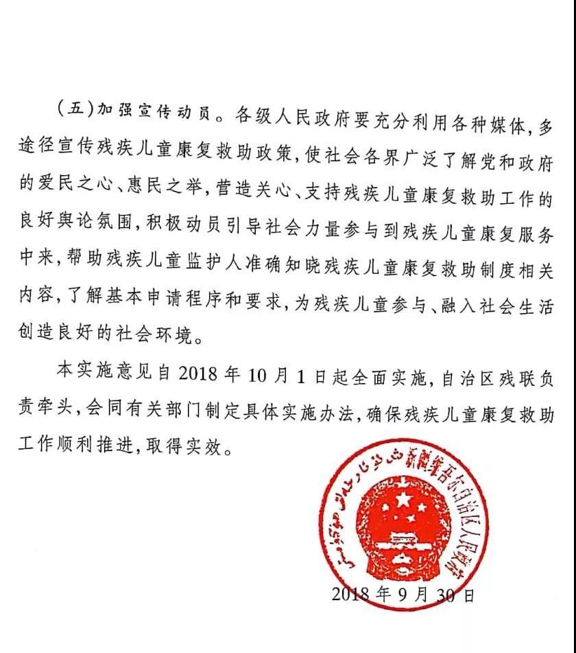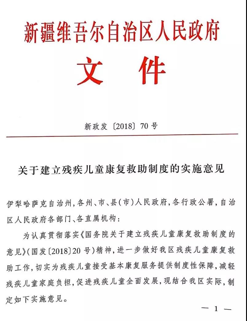 新疆维吾尔自治区人民政府关于建立残疾儿童康复救助制度的实施方案