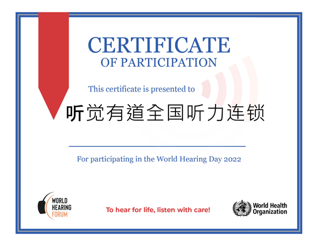 5月10日,听觉有道获世界卫生组织WHO授予荣誉证书。