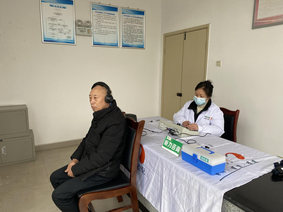 2023年2月23日,听觉有道和彭州市残联来到丽春镇为听障人士适配助听器。